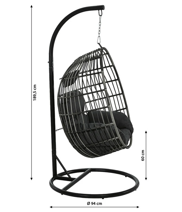 Für den Dehner Hängesessel Maui bilden ein Gestell aus pulverbeschichtetem Stahl und der Sessel aus robustem Kunststoffgeflecht ein erfolgreiches Team, das Ihren neuen Lieblingssitzplatz stabil, standsicher und witterungsfest macht. Er kann locker ein Gewicht bis zu 150 kg tragen bzw. hin- und herschaukeln und er lässt auch alle Wetterkapriolen ungerührt über sich ergehen – von Hitze bis Kälte, von Regen bis Schnee. Passend zum Dehner Hängesessel ‘Maui‘ erhalten Sie auch ein dickes Sitz- und Rückenpolster sowie ein kleines Kopfkissen, die jede Minute in dem Schaukelsessel noch himmlischer machen.