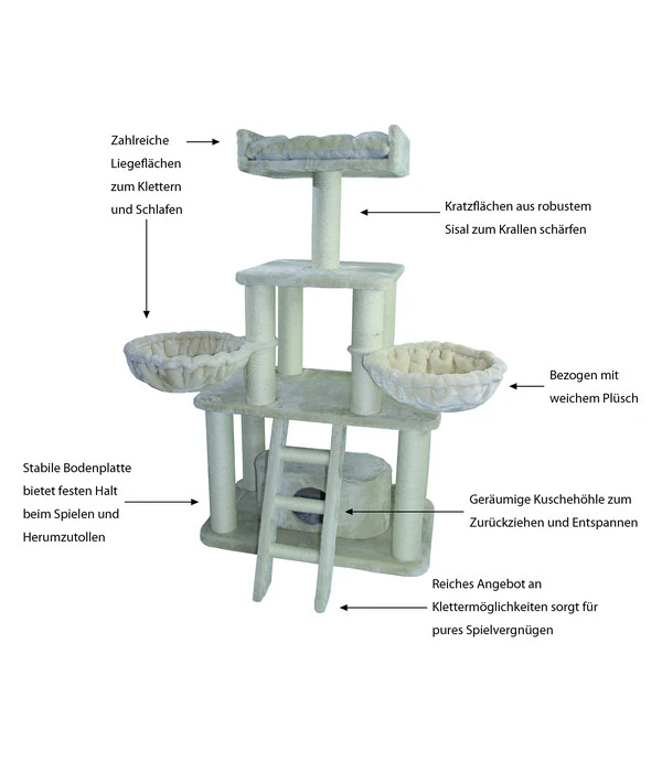 6 Ebenen, Liegeflächen mit Plüsch, Leiter & Sisal zum Kratzen