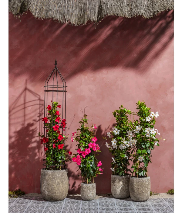 Ganz gleich, ob Sie sich für einjährige oder mehrjährige Kletterpflanzen entscheiden, die an dem Dehner Premium Obelisk Odin wachsen sollen, ist eines wichtig: Erst die Rankhilfe sicher befestigen, dann die Pflanze in den Boden setzen. Die beste Zeit zum Pflanzen sind Frühjahr und Herbst. Pflanzen Sie im Herbst eine mehrjährige Kletterpflanze, können Sie bereits im nächsten Sommer einen üppigen Austrieb erleben und die Farbenpracht Ihrer Kletterer bewundern. Aber auch im Sommer können Sie Kletterspezialisten an den Dehner Premium Obelisk Odin pflanzen. Gießen Sie regelmäßig und ausgiebig, dann ist das Anwachsen der Pflanzen auch bei warmen Temperaturen kein Problem.