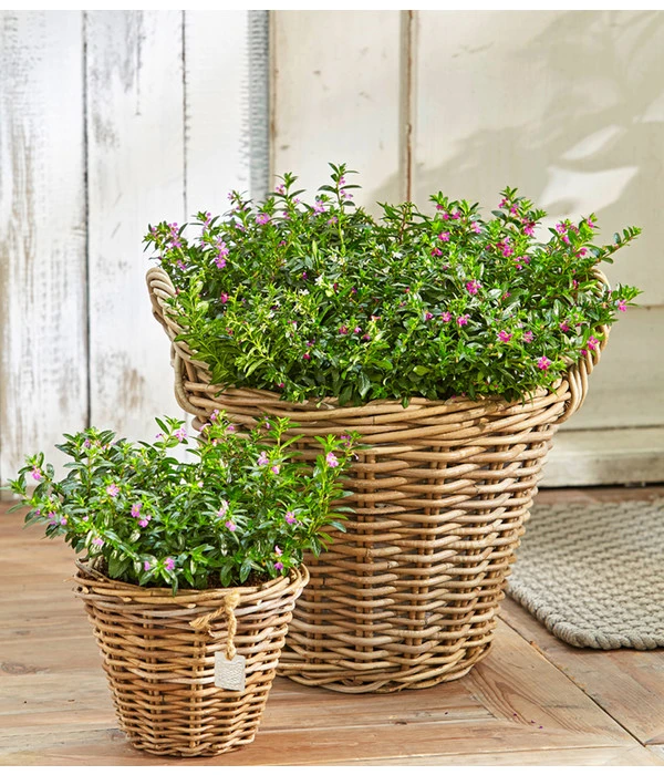 Man glaubt gar nicht, dass sich hinter einer der zierlichsten Balkonblumen ein pflegeleichter Dauerblüher versteckt. Das Köcherblümchen, auch Japanische Myrte genannt, ist anders als sein Name vermuten lässt – in Mittelamerika beheimatet. Es trägt an den dicht verzweigten Trieben zahlreiche kleine Blüten, die regelrecht über den Blättern zu schweben scheinen. Die feingliedrigen Blätter der Cuphea laufen spitz zu und bilden einen wunderbaren Kontrast zu den grazilen weißen, violetten oder rosaroten Blüten. Diese tolle Kombination aus Laub und Blüte macht den kompakten und schwachwüchsigen Busch während der Blütezeit zwischen April und Oktober zu einer dekorativen Beet- und Kübelpflanze.