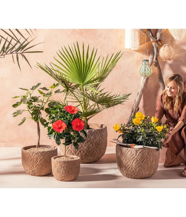 Die prächtigen Trichterblüten sind immer wieder ein Schau und nicht nur Liebhaber exotischer Pflanzenschönheiten können ihre Augen kaum von den Blütenkunstwerken des Hibiskus Strauchs abwenden. Gerade vor dem Hintergrund des dunkel glänzenden Laubs leuchten die Blüten in Weiß, Rot, Rosa oder Gelb besonders intensiv. Kein Wunder, dass sich diese exotische Blütenschönheit, die in den tropischen und subtropischen Gegenden der Erde beheimatet ist, sich auch bei uns eine echte Fan-Gemeinde angeblüht an. Denn nicht nur in voller Blütenpracht ist der Hibiskus eine Augenweide, auch im Verblühen sehen die Blüten noch attraktiv aus, denn sie rollen sich spiralförmig zusammen und behalten sogar ihre Farbe, bis sie zu Boden fallen. Mit einem Hibiskus-Busch entscheiden Sie sich für einen wuchs- und blühfreudigen Tropenstrauch, an dem Sie viele Jahre lang Freude haben werden.
